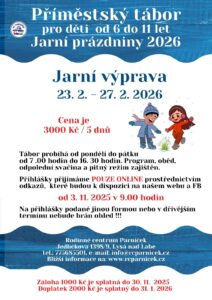 🌷 Jarní výprava pro malé dobrodruhy 🌿 Zima pomalu končí a příroda se probouzí – ideální čas vydat se na jarní dobrodružství plné her, tvoření a nových přátelství!Na děti čeká pestrý program, ve kterém nebude chybět pohyb, tvořivost, smích ani překvapení. Každý den přinese něco jiného – nové zážitky, výzvy i malé radosti. Naše Jarní […]