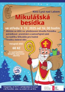 I letos se na vás budeme těšit v kině v Lysé nad Labem, kde bude probíhat Mikulášská besídka. Přijde Mikuláš s nadílkou a divadlo s pohádkou.
