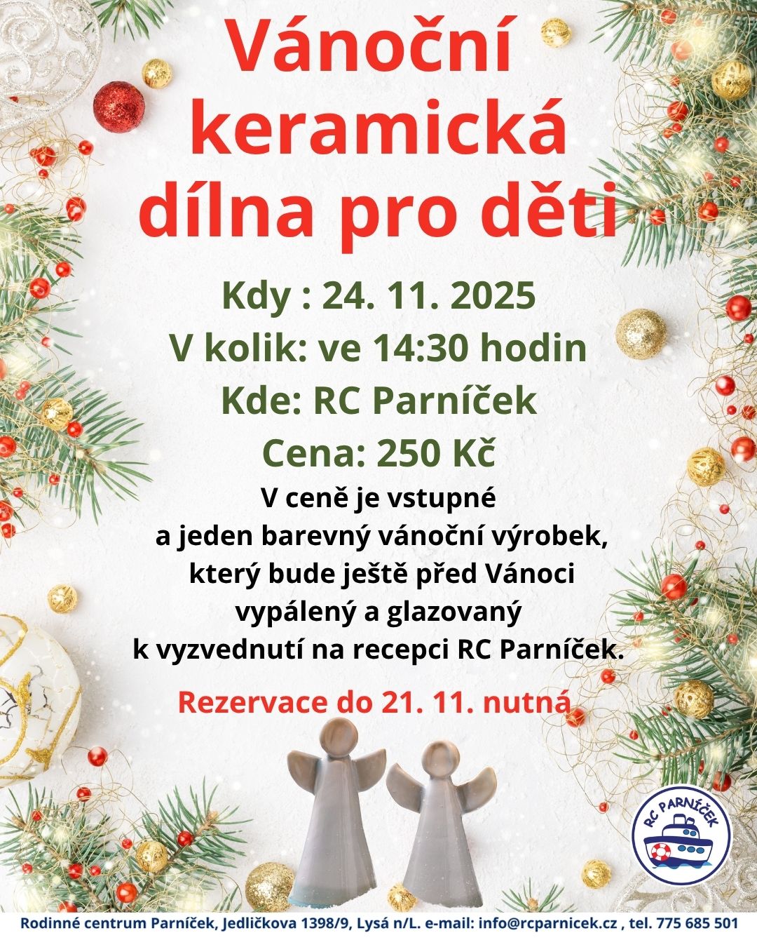 Zveme vás 24.11.2025 ve 14:30h. k nám na keramiku pro děti, výrobky budou vypáleny a glazovány ještě před Vánoci. Vstupné je 250 kč.